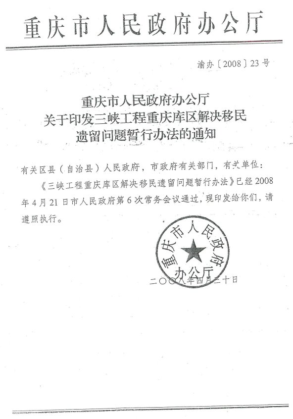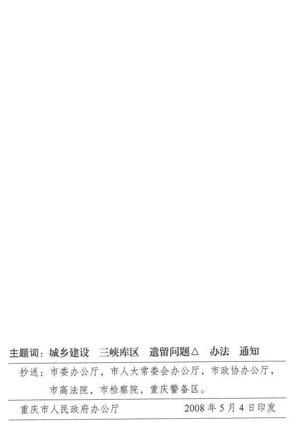 重慶市人民政府辦公廳關于印發三峽工程重慶庫區解決移民遺留問題暫行辦法的通知